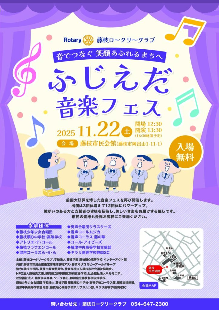 2025年11月22日(土)、藤枝市民会館にて開催される『ふじえだ音楽フェス』に出演させていただきます。