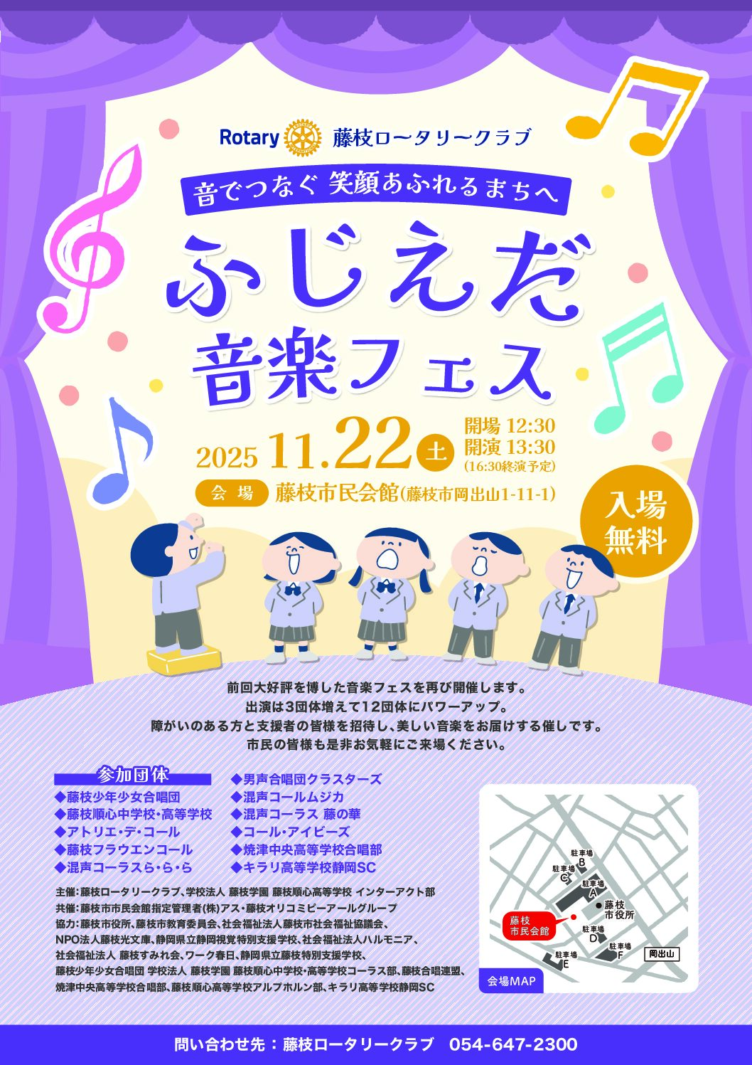 2025年11月22日(土)、藤枝市民会館にて開催される『ふじえだ音楽フェス』に出演させていただきます。