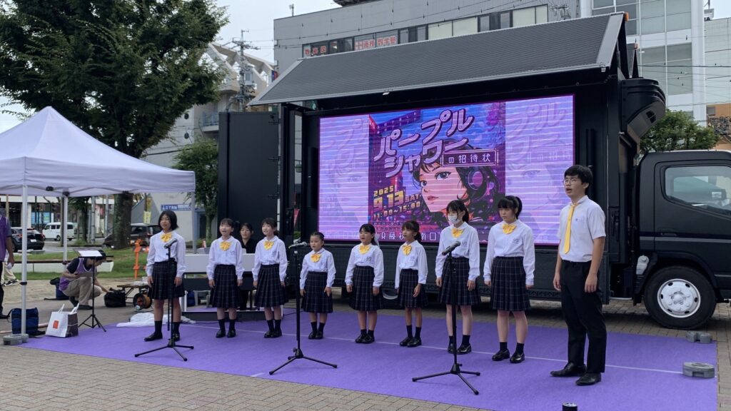 会場では、皆様のあたたかな拍手や笑顔に包まれながら、「パープルシャワー藤枝」を含めた7曲を披露させていただきました。
